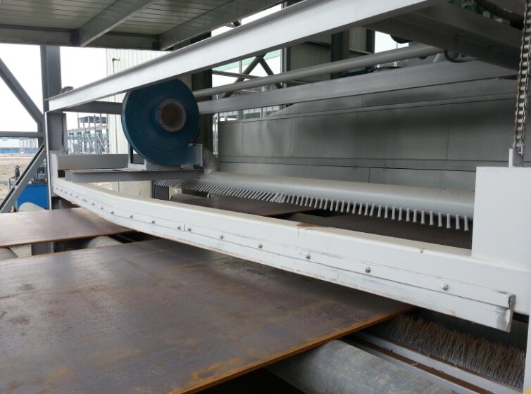 鋼板預(yù)處理線拋丸清理機設(shè)備是大型船廠、鋼結(jié)構(gòu)廠家的必備的拋丸機設(shè)備,其拋丸機設(shè)備自動化程度高,生產(chǎn)量大。